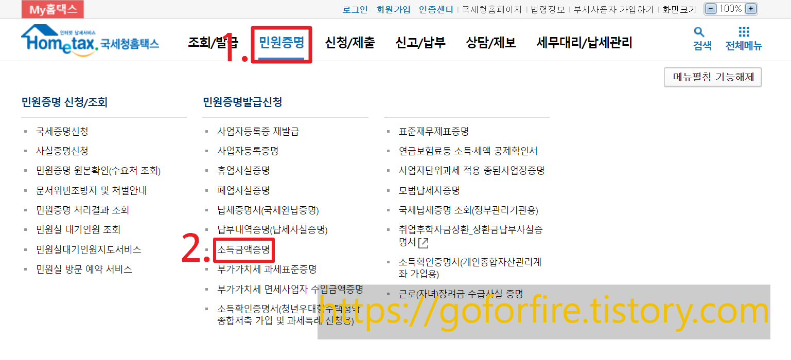 ▶ 발급방법: 홈택스 - 민원증명 - 민원증명발급 신청 - 소득금액 증명